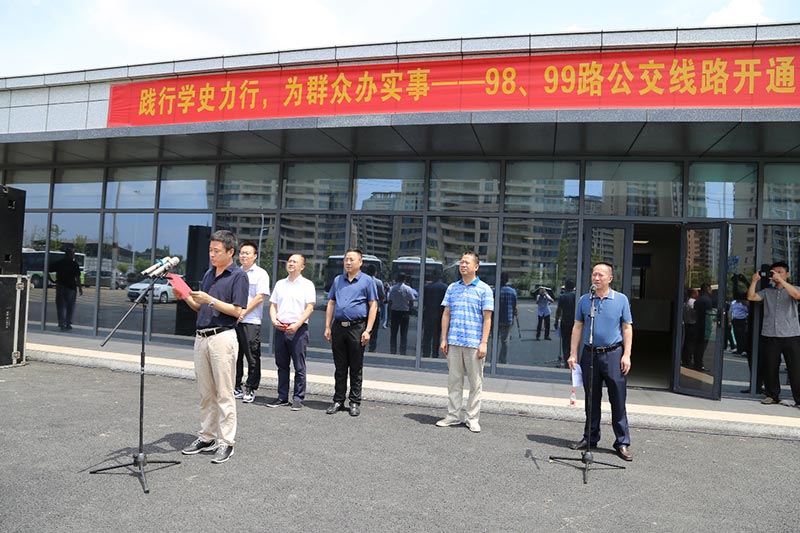 市交通運(yùn)輸局黨組書記、局長徐業(yè)偉、總公司黨委書記、董事長肖長江以及蘆淞區(qū)相關(guān)領(lǐng)導(dǎo)蒞臨啟動儀式;肖董事長代表公交致辭;市交通運(yùn)輸局黨組書記、局長徐業(yè)偉宣布正式通車;儀式結(jié)束后,領(lǐng)導(dǎo)們親自體驗(yàn)乘坐新開通的98路公交車。