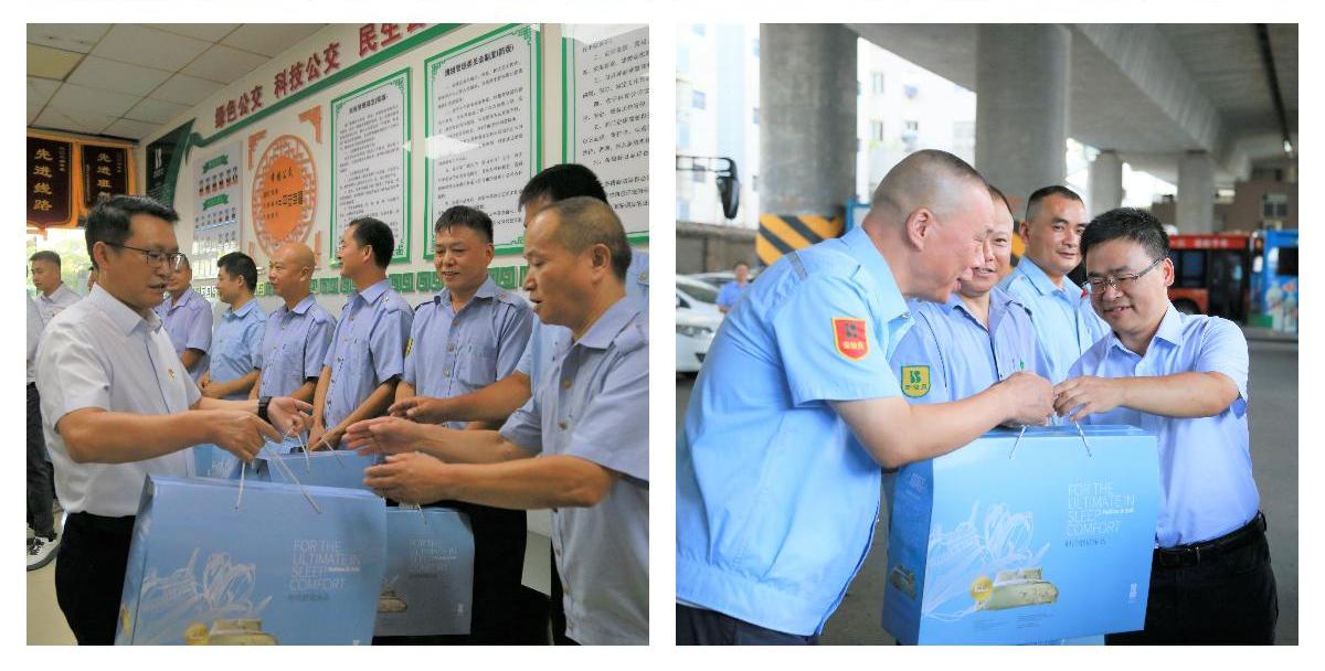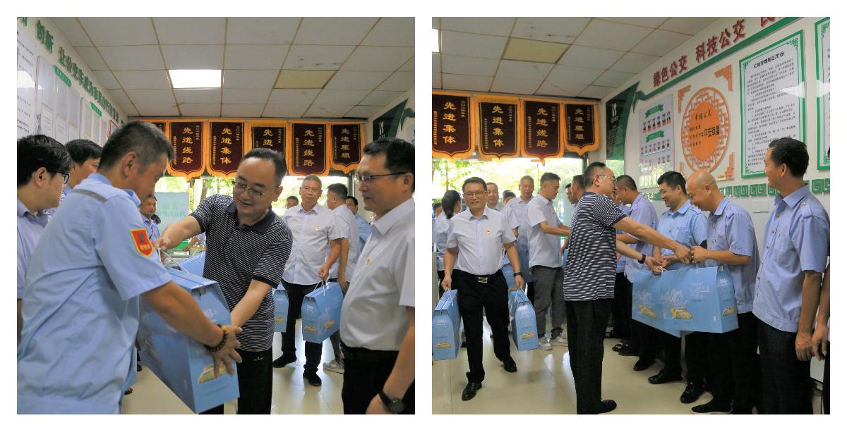 活動(dòng)當(dāng)天,集團(tuán)黨委副書記、總經(jīng)理譚劍平、巴士公司領(lǐng)導(dǎo)班子及各職能部門負(fù)責(zé)人,前往各個(gè)公交線路站點(diǎn)看望、慰問堅(jiān)守工作崗位的一線職工,為他們送去清涼物資和暖心關(guān)懷。每到一處,公司領(lǐng)導(dǎo)都向職工們致以親切慰問,提醒他們在高溫環(huán)境下務(wù)必做好防暑措施,增強(qiáng)自我保護(hù)意識,確保身體健康,為公交的穩(wěn)定運(yùn)營提供有力保障。