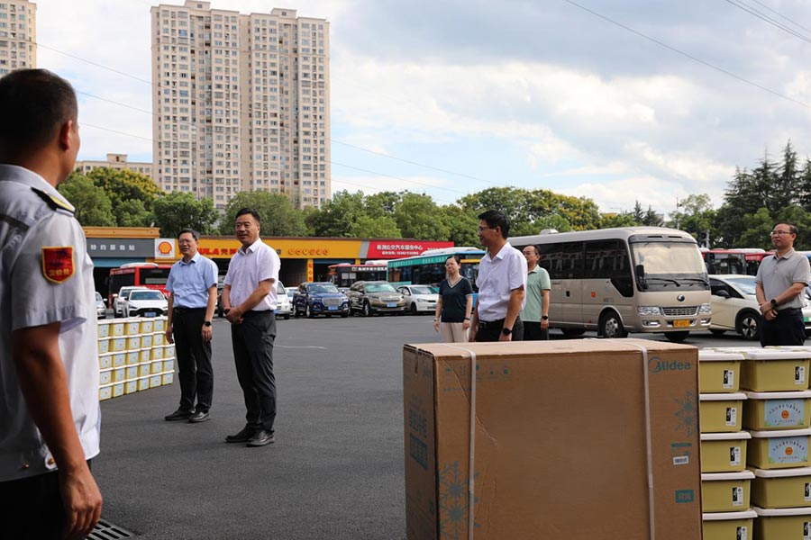 8月21日下午,株洲市人大常委會(huì)主任尚斌一行赴市公交集團(tuán)開展"送清涼"慰問活動(dòng),向在高溫天氣下奮戰(zhàn)在公交一線的廣大職工致以真切關(guān)懷和誠(chéng)摯慰問,并為他們送去防暑降溫物資。市人大常委會(huì)副主任、市總工會(huì)主席李余糧,市人大常委會(huì)秘書長(zhǎng)提名人選文專文,市人大社會(huì)建設(shè)委主任委員尹瞬,市總工會(huì)黨組書記、副主席孫丹參加。